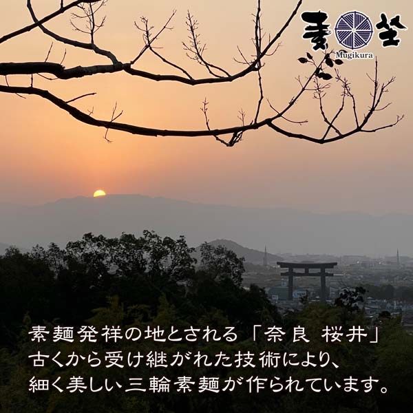 麦坐の三輪素麺は、風味に優れた小麦粉を用いて、三輪手延べの技法を受け継いだ独自の技で仕上げた手延べ素麺です。見た目の美しさ、コシの強さともちもち食感は格別。たくさんお召し上がりになるご家庭や、気持ちを伝える贈り物としてどうぞ。